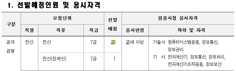 | 선발 인원 | 응시인원 | 경쟁률 | 합격선 |